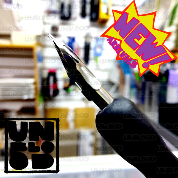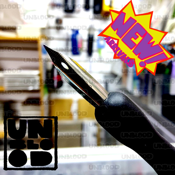 2 manguillos de plástico rígido y pesado. Uno para plumillas de media luna y otro para plumillas redondas.